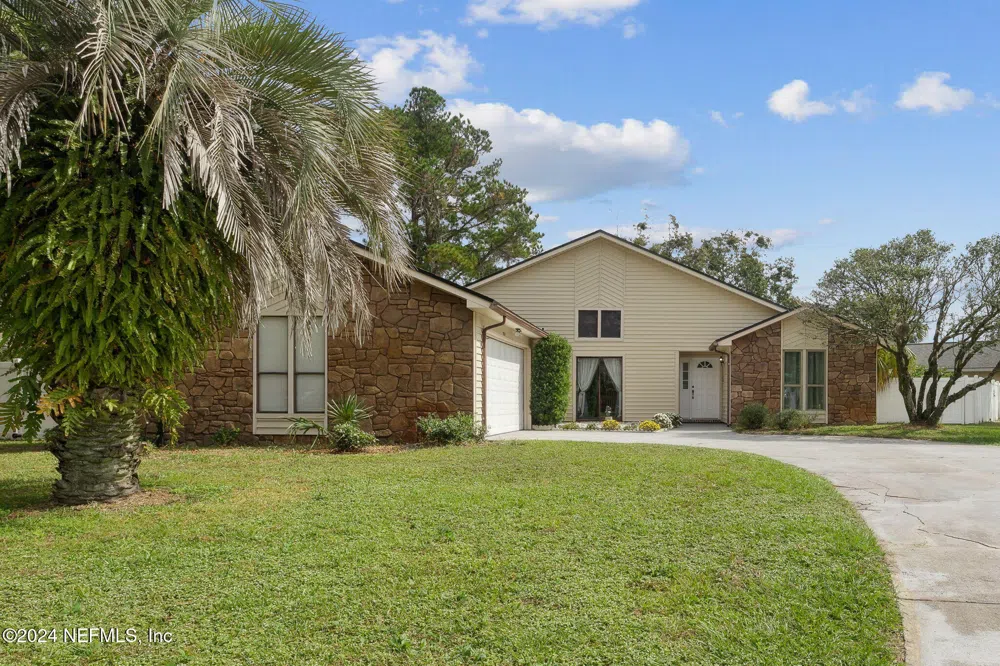 Like new 3 BR 2BA Pool home located in the heart of Mandarin. This stunning 1,800+ square foot home is situated on an oversized corner lot. Featuring a gleaming in-ground pool, it's perfect for entertaining family and friends. . The property includes a two-car garage with laundry facilities and an updated kitchen boasting beautiful white cabinets, stainless steel appliances, and a spacious pantry closet. The open floor plan showcases vaulted ceilings in the family room, complete with a stone faced wood-burning fireplace. The freshly painted primary bedroom also features vaulted ceilings and an oversized private bath with direct access to the pool area. Two additional bedrooms are thoughtfully located on the opposite side of the house, sharing a remodeled hall bath. The covered patio provides a serene spot to unwind after a long day. This home is move-in ready and ideally located near shopping, beaches, parks, and restaurants, making it perfect for entertaining family and friends.